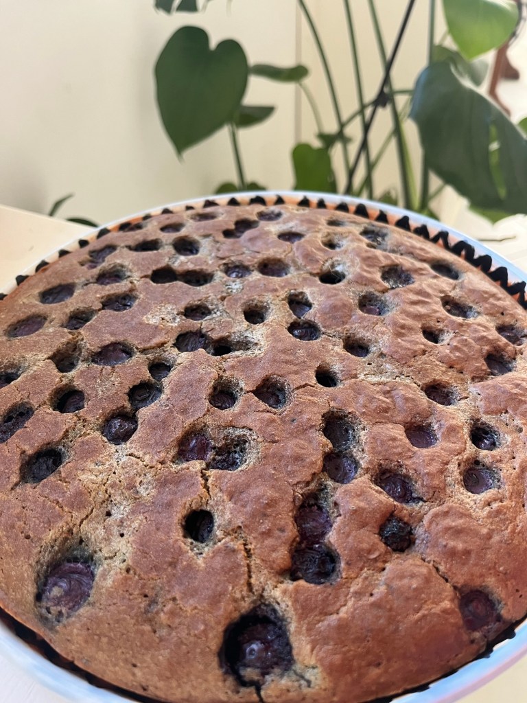 Dans un cul de poule, fouettez les œufs, ajoutez-y la pincée de sel et les 2 cuillères de mélasse. Puis incorporez la farine de riz, l’ube, le psyllium et le bicarbonate de soude. Mélangez doucement et ajoutez le lait ribot et une belle poignée de myrtilles 🫐 en mélangeant doucement. Une pâte homogène obtenue, graissez un moule à gâteaux avec de l’huile de coco (ou du beurre si vous préférez) et versez le mélange. Rajoutez en toping les quelques myrtilles qu’il vous reste.