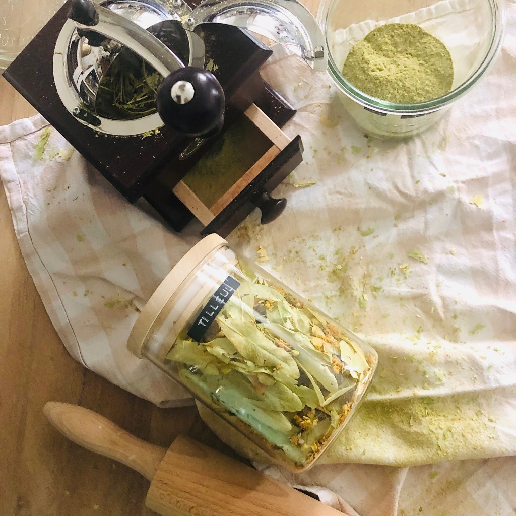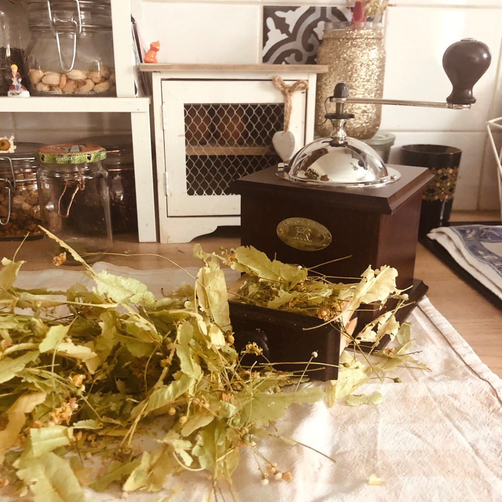 Aujourd’hui ce que je vous propose c’est une approche complètement différente du tilleul, qui peut être intéressant si vous avez un arbre 🌳 de tilleul chez vous ou tout simplement du tilleul que vous voulez utiliser différemment, un moulin à café et de l’huile de coude si le moulin est manuel 😊. D’autant que la période de cueillette arrive (mi-juin) , ça peut être une activité sympathique au vert.