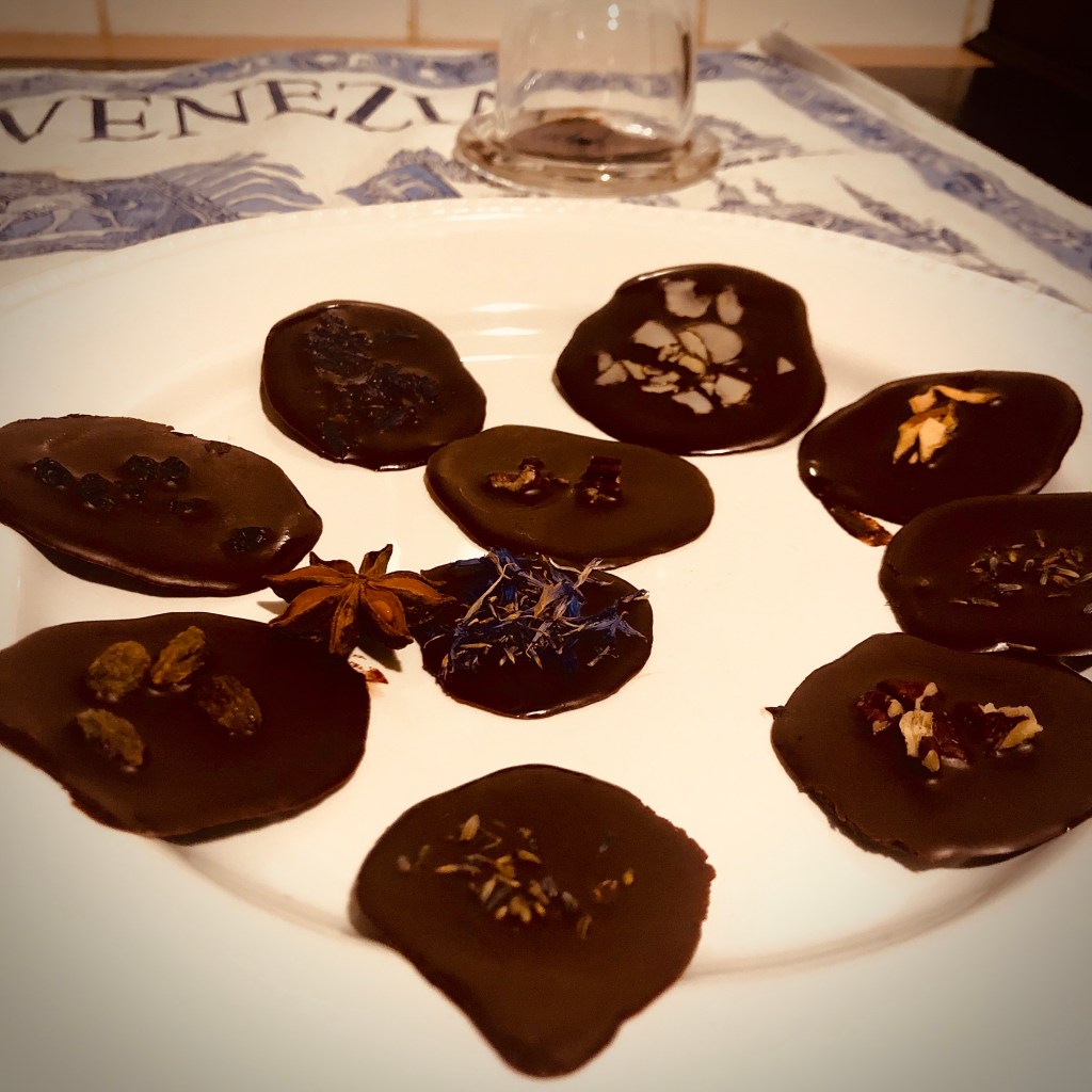 Faites fondre au bain-marie le chocolat et l’huile de coco. Sortez le mélange fondu du feu et ajoutez-y le sirop d’agave et l’huile essentielle de vanille en remuant ( hors du feu). Sur un papier sulfurisé, a l’aide d’une petite cuillère faites des petits ronds de chocolat ( plus ou moins 😅) et garnissez avec les éléments cités plus haut ( voir photo ci-dessous ) ou autres si vous avez des préférences. Laissez refroidir et conservez au réfrigérateur.