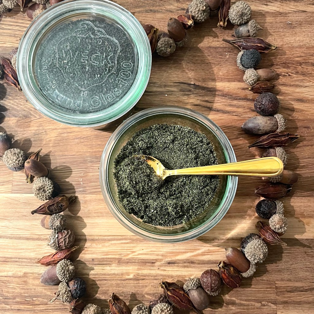 Il existe diverses possibilités pour diminuer sa consommation de sel 🧂 en gardant le plaisir et associant de nouvelles saveurs, je vous propose de partir sur un gomasio épicé fait maison. Avec seulement 3 ingrédients de qualité vous aurez un assaisonnement aux notes subtiles de noisettes rehaussées par le curcuma, le tout avec peu de sel. L’intérêt de ce mélange est qu’en gardant vos habitudes d’assaisonnement sans vous en rendre compte vous aurez la main moins lourde sur le sel pour une même quantité. Pour se faire vous aurez besoin de: