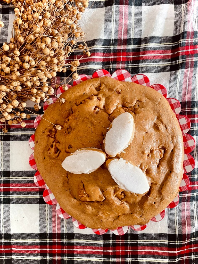 Battez l’œuf avec le sucre et les épices puis ajoutez la farine de millet, la poudre d’amandes le psyllium, le beurre et le bicarbonate de soude, en mélangeant lentement. Incorporez petit à petit l’eau de fleurs d’oranger et les zestes d’orange. Sur un papier cuisson, formez un disque avec la moitié de la pâte et étalez votre la pâte de calissons dessus. Recouvrez avec le reste de pâte. Enfournez pour 25 minutes à 165C.