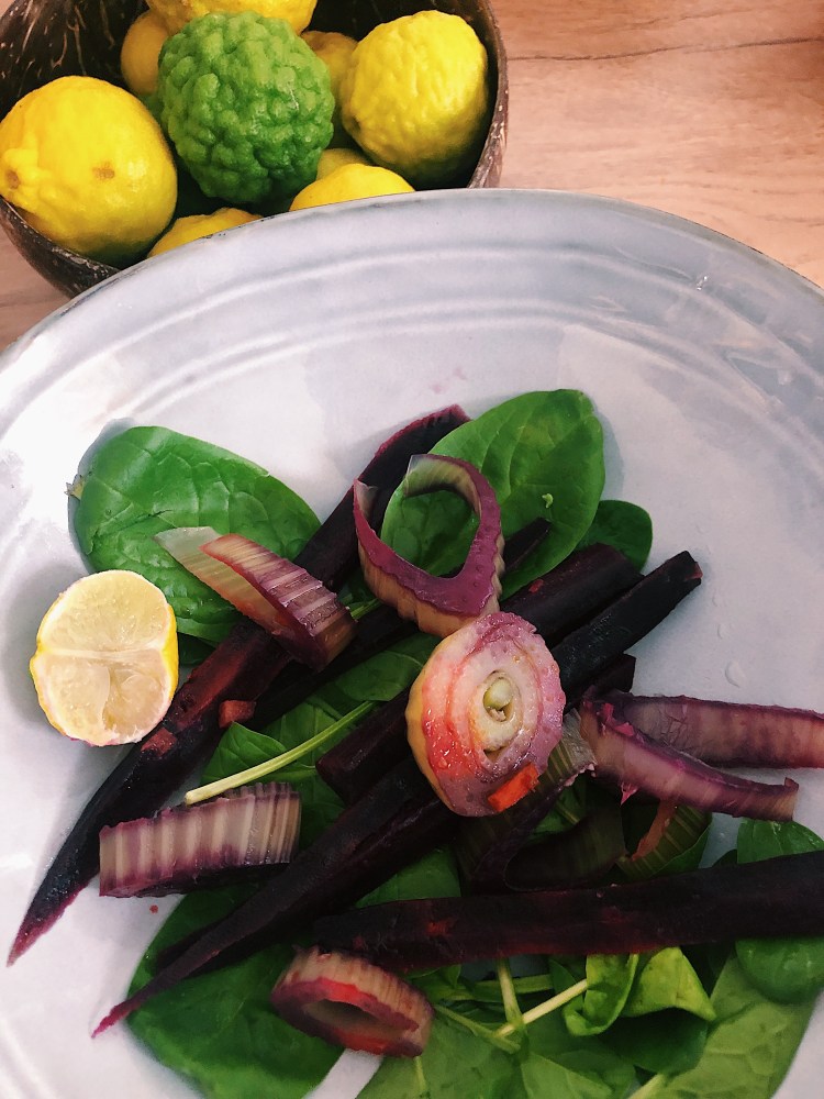 Ce repas est très complet et rassasiant, les saveurs sont légères et savoureuses avec ce petit goût de noisette qu’apporte le chou-rave. L’apport en protéines est intéressant grâce aux lentilles et au quinoa qui associés au chou-rave permettent une meilleure absorption du fer.
