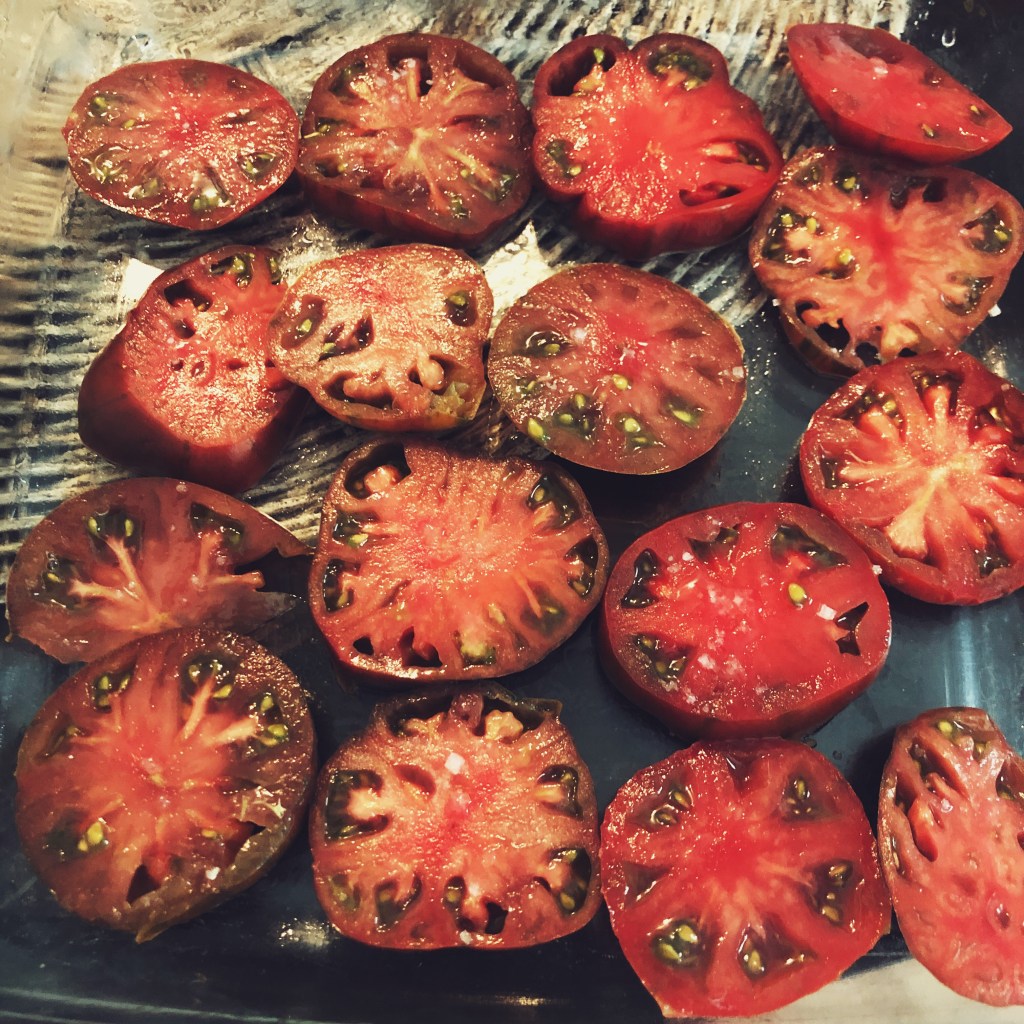 Commencez par couper vos tomates en rondelles et étalez-les sur un papier sulfurisé avec un peu de sel pour les faire dégorger. Dans un récipient mélangez l’eau de source, la farine de pois-chiches et l’ail des ours ainsi qu’un tour de moulin à poivre afin d’obtenir un mélange homogène. La farine de pois-chiche étant un excellent liant, elle remplace à merveille les oeufs. Dans un plat à gratin, préalablement huilé avec un peu d’huile d’olive, présentez vos rondelles de tomates que vous viendrez couvrir avec le mélange à base de farine de pois-chiches. Enfournez pour 20minutes à 180c°( thermostat 6).