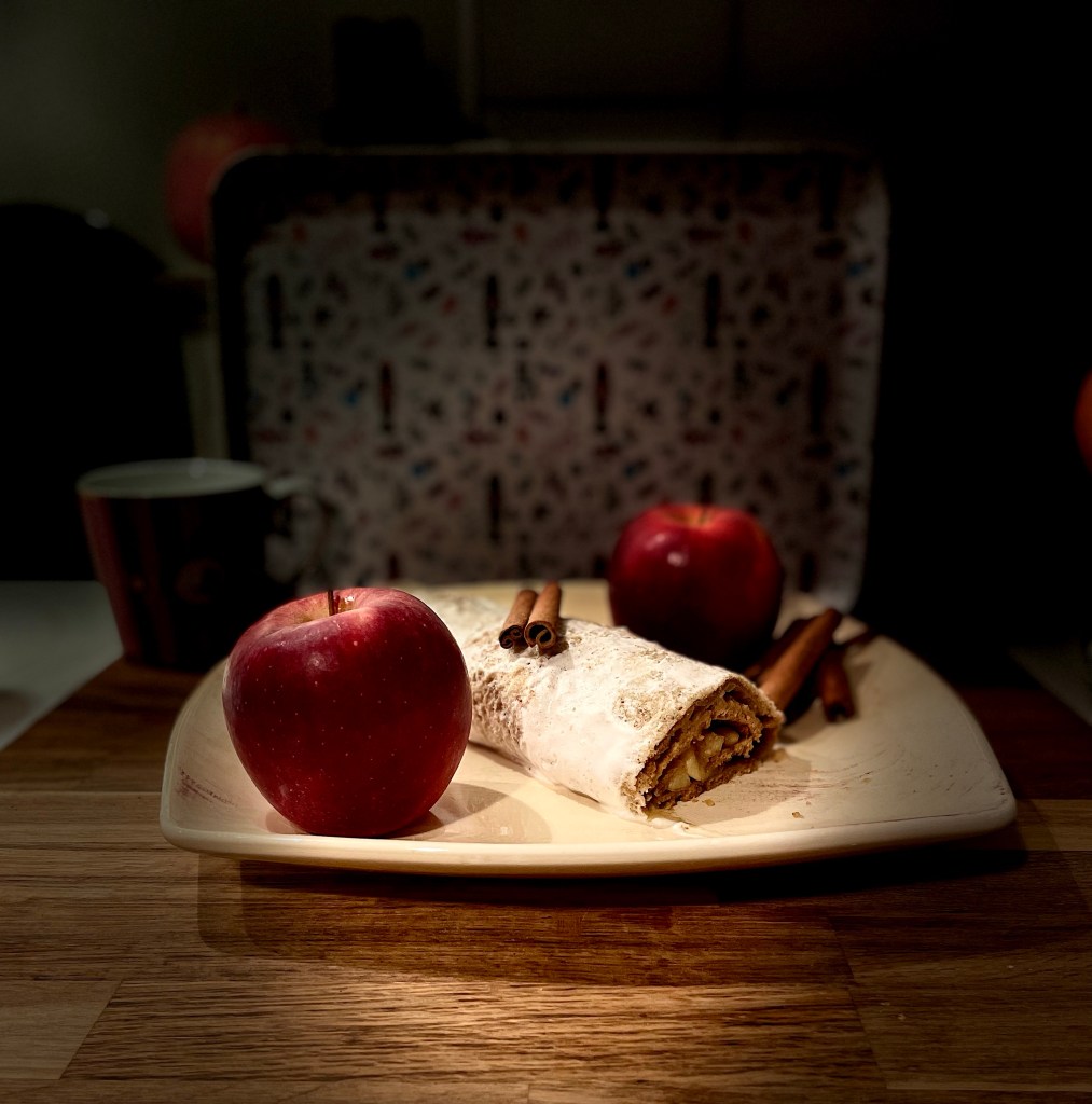 Une pomme allait se perdre… ainsi ce 9 décembre je vous propose un gâteau avec un fruit, la pomme. Dans les 13 desserts, les fruits frais ont leur place, même si la pomme n’est pas la plus représentée, on pense souvent plus à l’orange ou à la mandarine ( cela viendra), les fruits frais sont une richesse supplémentaire, qui viennent s’ajouter à cette belle présentation des 13 desserts de Provence.