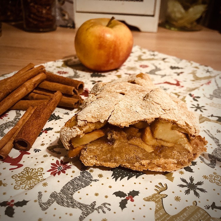 En me baladant à coté de chez moi, j’ai senti une bonne odeur de cannelle qui émanait de diverses maisons aux alentours, ce qui m’a donné envie de faire une recette où je pourrai l’utiliser. Autant hier nous étions sous le soleil d’Hawaii, mais aujourd’hui en ce 9 décembre je vous emmène dans un tout autre décor. Nous partons pour les magnifiques forêts noires d’Autriche découvrir une des spécialités du pays: l’Apfelstrudel qui est aussi appelé Strudel aux pommes, que l’on peut traduire par tourbillon aux pommes. Ma version revisite de cette recette est très facile à réaliser, peu sucrée et vegan; je l’aurais voulu sans gluten, malheureusement j’ai eu un souci avec la farine que j’ai utilisé, le rendu n’était vraiment pas terrible, aussi j’ai dû refaire la pâte en vitesse avec de la farine de petit épeautre qui est plus digeste que la farine de blé mais qui n’est pas dépourvu de gluten pour autant. Cette recette simplifiée nécessite peu d’ingrédients, mais reste délicieuse, en même temps ajoutez de la cannelle et des pommes quelque part et c’est réussi ;).