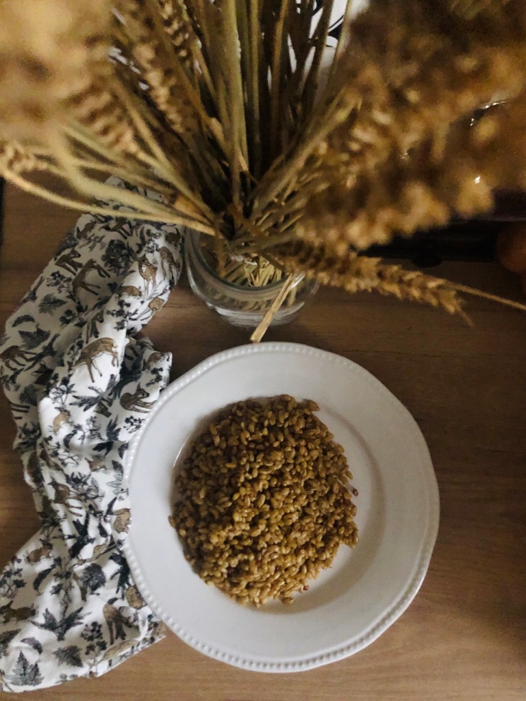 Et pour preuve, quoi de mieux qu’une petite recette d’hiver à base de blé khorasan en cette Sainte Barbe? En voici une inspirée du risotto mais sans riz 🍚 Si vous souhaitez la faire pour ce soir en revanche, dès le matin il faudra mettre le blé khorasan à tremper pendant au moins 12h 🕛 car il est assez long à cuire.