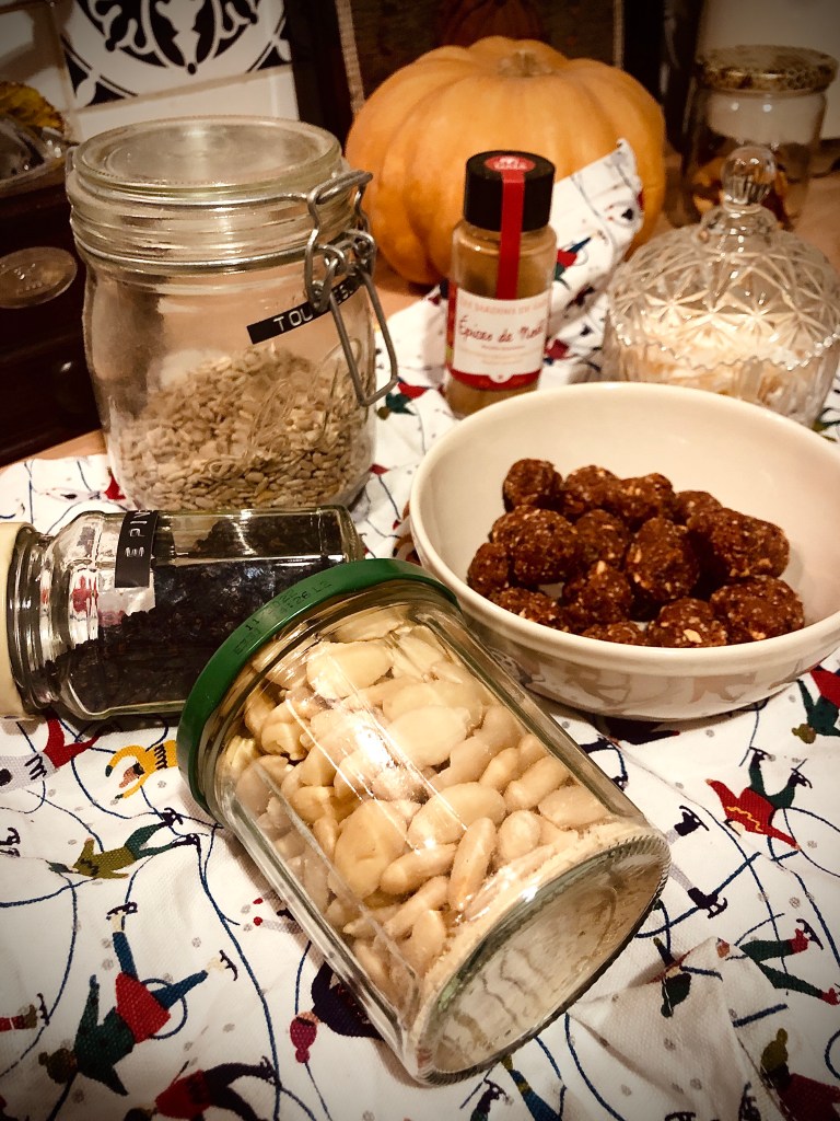 Je vous propose deux petites recettes aux saveurs de noël 🎄 tout de même pour l’occasion. Par manque de temps j’ai choisi de faire très simple avec deux bases différentes, soit pour les amateurs de dattes, soit pour ceux qui préfèrent la figue. Pour éviter d’avoir à les faire tremper la veille ces deux ingrédients sont facilement trouvable sous forme de pâte que vous trouverez facilement en magasin bio et qui facilite grandement la vie en cuisine. En revanche, je vous conseille de faire tremper les oléagineux quelques heures 4/5 heures ou même la veille, cela sera plus digeste, plus facile à travailler.